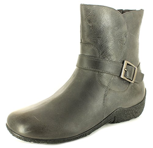 - Ladies/womens grey leather ankle boots with decorative ankle strap and silver tone buckle detail.